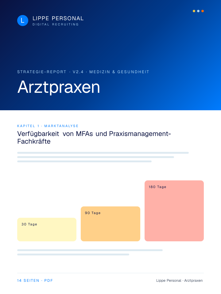Keine Buzzwords, keine Agentur-Folien. Nur die Zahlen, Vorlagen und der Recruiting-Plan, mit dem Arztpraxen aktuell qualifizierte Fachkräfte gewinnen.