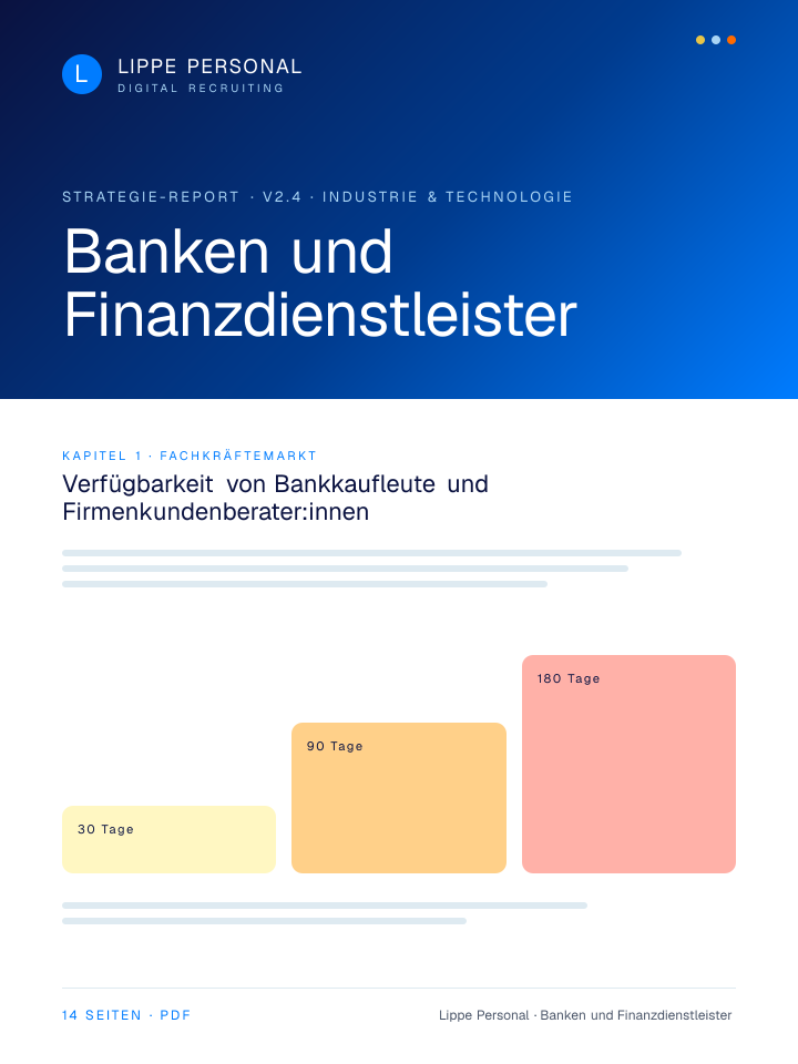 Keine Buzzwords, keine Agentur-Folien. Nur die Zahlen, Vorlagen und der Recruiting-Plan, mit dem Banken und Finanzdienstleister aktuell qualifizierte Fachkräfte gewinnen.
