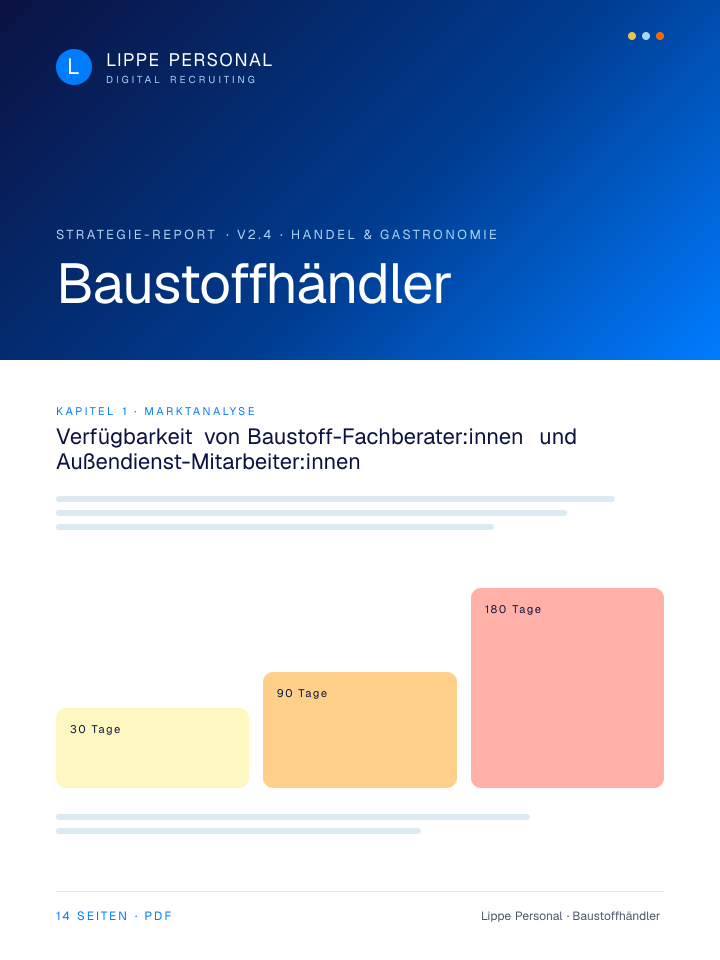 Kostenfreier Strategie-Report — wie Baustoffhändler in Deutschland aktuell Baustoff-Fachberater:innen und Außendienst-Mitarbeiter:innen gewinnen, ohne auf Stellenportale angewiesen zu sein.