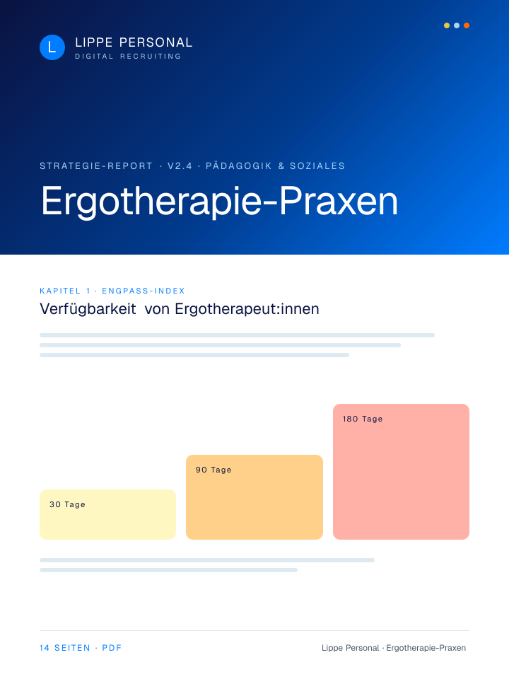 Keine Buzzwords, keine Agentur-Folien. Nur die Zahlen, Vorlagen und der Recruiting-Plan, mit dem Ergotherapie-Praxen aktuell qualifizierte Fachkräfte gewinnen.