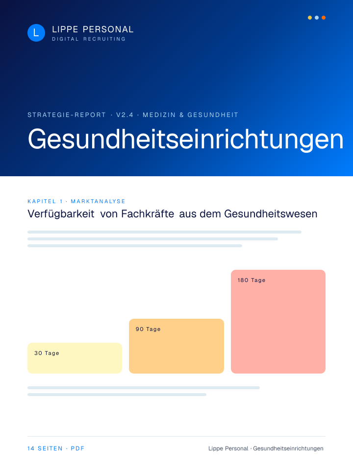 Keine Buzzwords, keine Agentur-Folien. Nur die Zahlen, Vorlagen und der Recruiting-Plan, mit dem Gesundheitseinrichtungen aktuell qualifizierte Fachkräfte gewinnen.