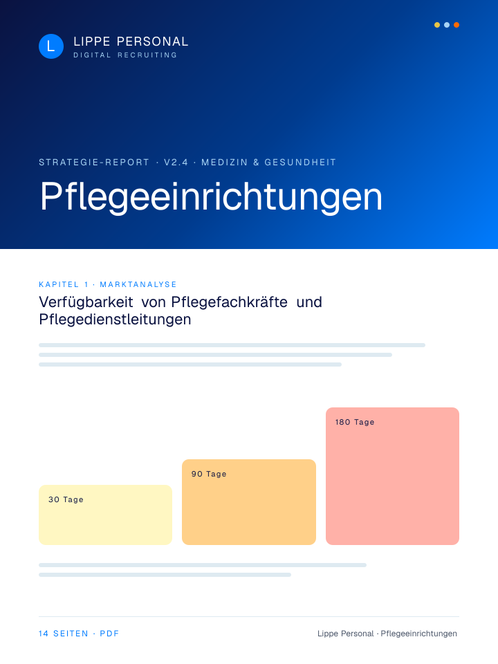Keine Buzzwords, keine Agentur-Folien. Nur die Zahlen, Vorlagen und der Recruiting-Plan, mit dem Pflegeeinrichtungen aktuell qualifizierte Fachkräfte gewinnen.