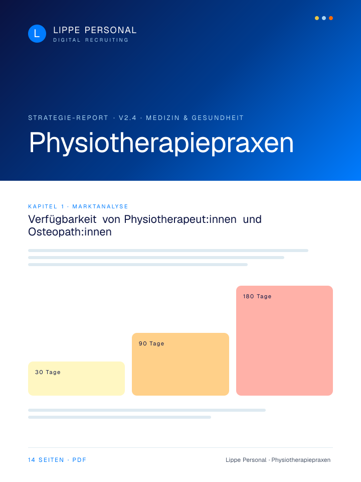 Keine Buzzwords, keine Agentur-Folien. Nur die Zahlen, Vorlagen und der Recruiting-Plan, mit dem Physiotherapiepraxen aktuell qualifizierte Fachkräfte gewinnen.