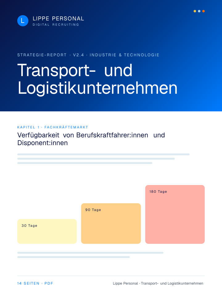 Keine Buzzwords, keine Agentur-Folien. Nur die Zahlen, Vorlagen und der Recruiting-Plan, mit dem Transport- und Logistikunternehmen aktuell qualifizierte Fachkräfte gewinnen.
