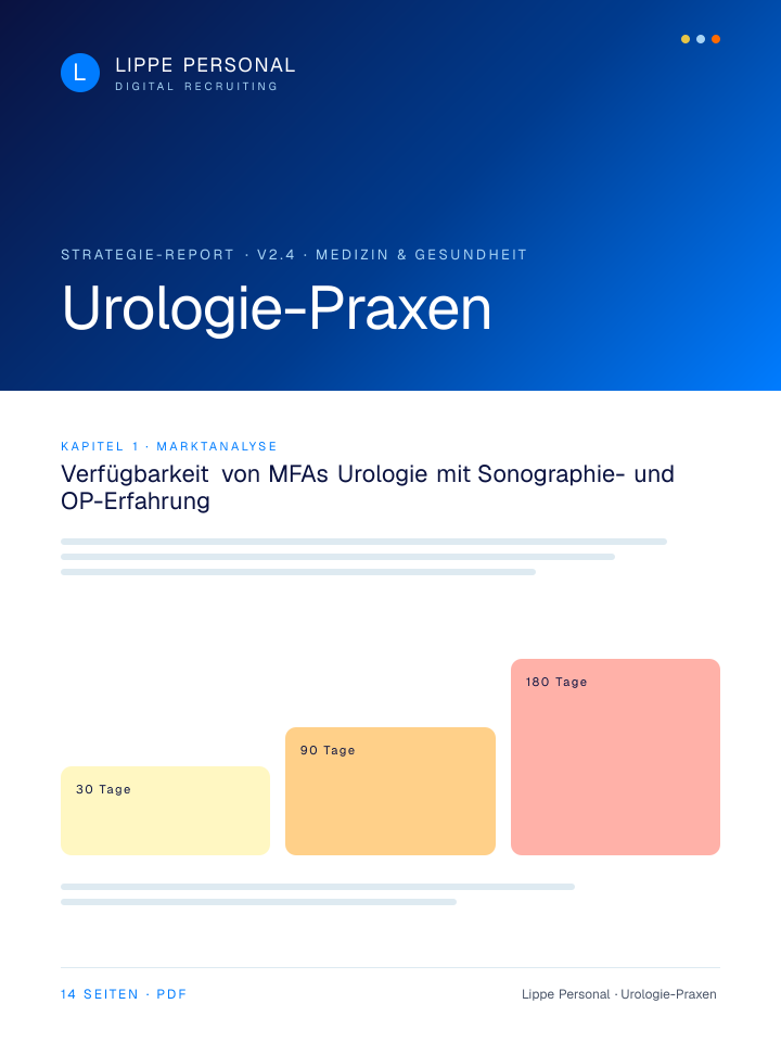 14 Seiten Klartext zur Gewinnung von MFAs Urologie mit Sonographie- und OP-Erfahrung. Kostenfrei, branchenspezifisch, sofort per Mail.